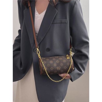 圓筒包包女2026新款潮時尚百搭洋氣手機包老花復古單肩斜挎枕頭包