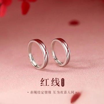 紅線情侶對戒情侶款純銀一對閨蜜戒指男女2025新款爆款刻字可調節