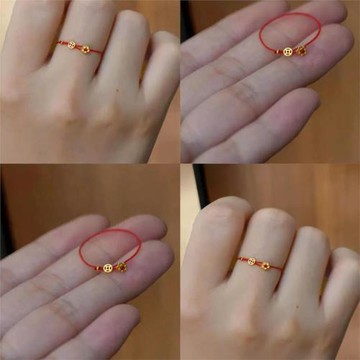 925純銀有錢花戒指女本命年手工編織繩錢幣紅繩食指環送閨蜜禮物
