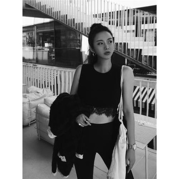 (免運)BettyChow蕾絲彈力毛線背心 春夏時髦修身打底黑色緊身短款內搭