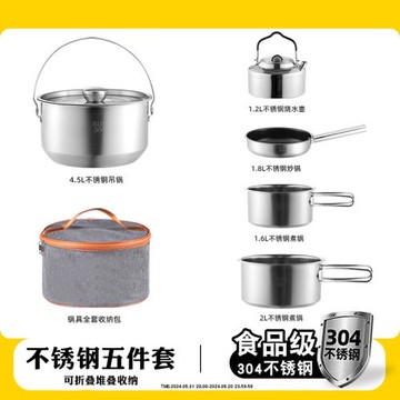 德國戶外鍋具露營野炊裝備燒水壺便攜爐具套裝煮鍋炒鍋304不銹鋼