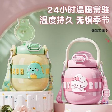兒童保溫杯女可愛吸管水杯帶背帶便攜學生316食品級杯子2023新款