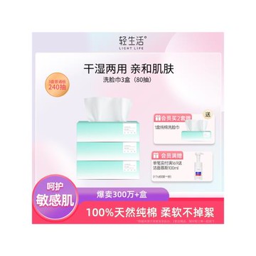 輕生活洗臉巾一次性純棉潔面巾女擦臉巾家用抽取式3盒敏感肌