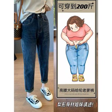 2025年秋季新款彈力哈倫牛仔褲女大碼胖mm高腰遮肉顯瘦蘿卜老爹褲