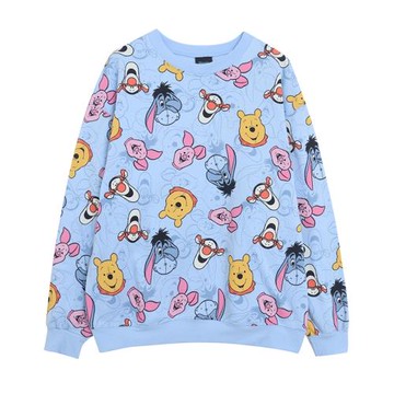 外貿卡通動漫滿印圓領寬松顯瘦加絨長袖套頭衛衣減齡俏皮上衣可愛