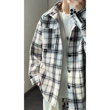 港風黑白色格子小香風外套男款高級感痞帥穿搭秋季毛呢子襯衫夾克