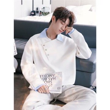 CHICERRO西西里男裝春秋新款白色拼接圓領休閑男生春季長袖衛衣潮