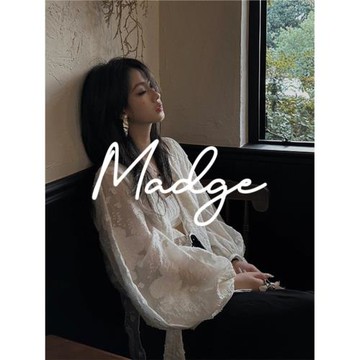 S.andro Madge慵懶少女白色燈籠袖襯衫女早春寬松V領重工提花上衣