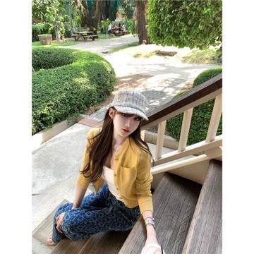 點我下載Bigking大金家「矜貴coco」 黃色小香風針織開衫女秋短款上衣外套