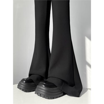 黑色開叉微喇叭西裝褲女春季2025新款高腰顯瘦休閑垂感闊腿褲