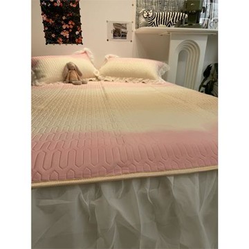 點我下載ins夏季漸變粉色縵紗床裙乳膠涼席三件套空調軟涼感絲席子可水洗