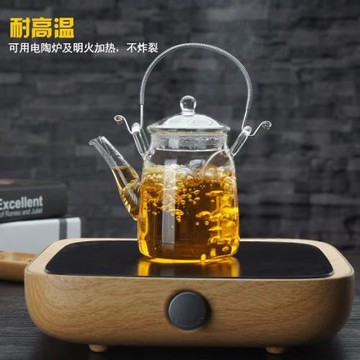 玻璃提梁壺電陶爐加熱煮茶壺套裝耐熱黑茶壺家用泡茶壺養生燒水壺