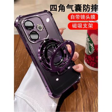 適用蘋果16手機殼iPhone15ProMax旋轉折疊支架14合金隱形支架13磁吸充電12防摔硅膠保護套11大孔時尚B10