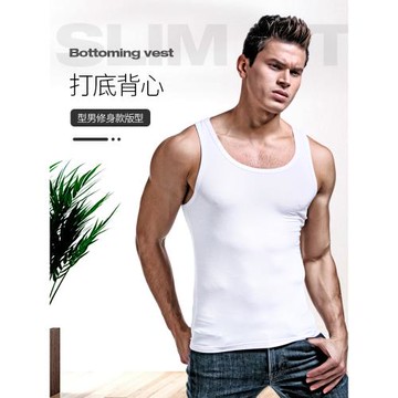 男士背心夏季潮修身型跨欄運動健身莫代爾內穿打底白色汗衫男緊身