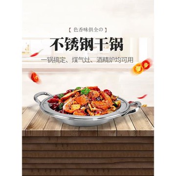 不銹鋼干鍋商用餐廳飯店固液態酒精爐火鍋歐式寬邊雙耳平底干鍋仔