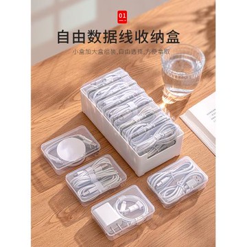 簡約便攜有線耳機數據線收納盒充電器U盤發飾皮筋雜物防塵小盒子