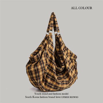 小眾慵懶風格子托特包女式2025新款大容量雙肩包單肩斜挎帆布袋包