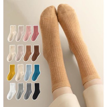 襪子女棉秋冬季純色保暖中筒襪成人老人長筒女士棉襪媽媽款長襪