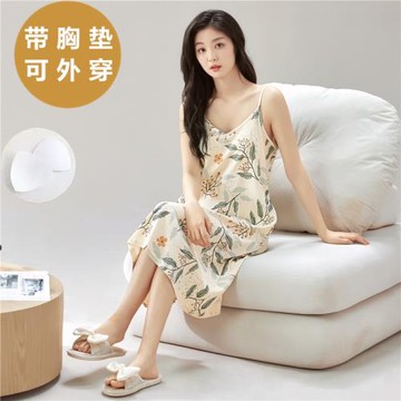 帶胸墊吊帶睡裙女夏季純棉薄款連衣裙寬松大碼睡衣純欲性感家居服