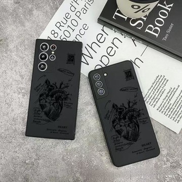 心臟素描適用三星S21手機殼s22ultra保護全包鏡頭NOTE20軟殼galaxys23個性創意s24 s25plus跨境潮
