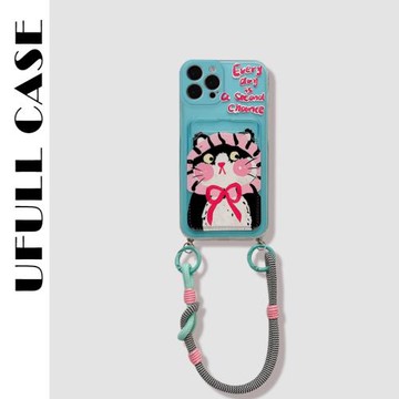 藍色油畫頭套貓咪適用三星s24ultra手機殼s21fe卡包s23+新款a05s/a06女a13手提掛繩a16硅膠a24創意a35防摔a52