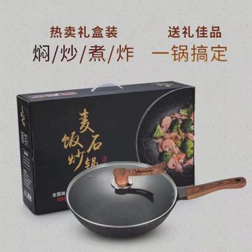 麥飯石不粘鍋炒鍋家用煎炒兩用不沾炒菜鍋平底鍋燃氣煤氣灶電磁爐