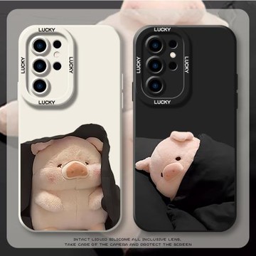 睡覺小豬適用三星s24手機殼s23+情侶款s22ultra防摔a54卡通s24+高級感a53女款a52全包galaxy新款至尊簡約瞳眼