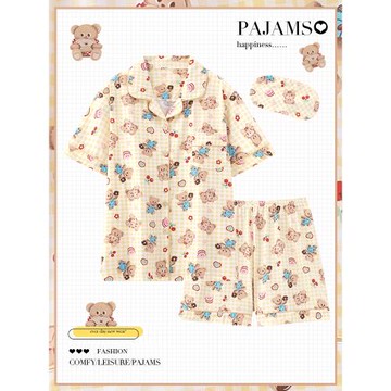 黃油小熊睡衣女夏季純棉短袖薄款日系卡通可愛學生夏天家居服套裝
