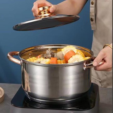 LUCUKU304不銹鋼蒸鍋家用加厚三層鋼多用途大湯鍋蒸煮兩用鍋28cm