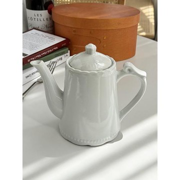 安木良品 外貿老貨 法式復古珠點花邊浮雕冷白色高溫陶瓷水壺茶壺