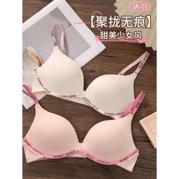甜美風粉色內衣女聚攏小胸顯大無鋼圈上托收副乳防下垂文胸罩薄款