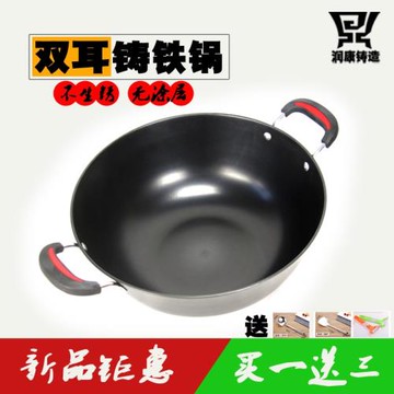 潤康鑄鐵鍋雙耳炒鍋不粘鍋家用炒菜鍋傳統生鐵鍋平底鍋電磁爐通用