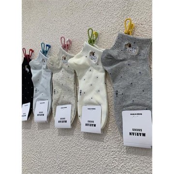 學院風圓波點短筒女襪子春夏新款網紅刺繡卡通小狗束腰運動低幫襪
