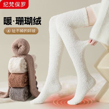 老人睡覺穿的襪子冬天暖腳怕冷神器晚上穿孕婦珊瑚絨過膝襪月子襪