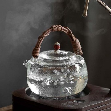 日式玻璃煮茶壺電陶爐燒水壺耐熱天然藤編玻璃提梁壺功夫茶具