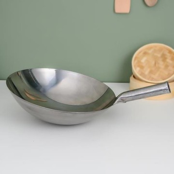 單柄炒鍋不粘鍋家用加厚不銹鋼炒勺商用飯店炒瓢燃氣灶圓底無涂層