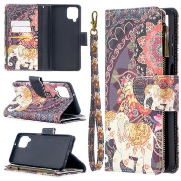 適用三星A42 A12拉鏈包彩繪手機皮套保護殼軟翻蓋插卡支架掛繩象