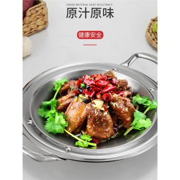 不銹鋼商用干鍋平底干鍋寬邊鍋歐式干鍋大邊盤雙耳淺干鍋單人火鍋