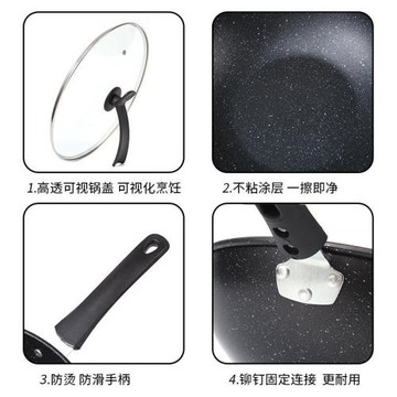 麥飯石不粘鍋炒鍋 電磁爐煤氣灶通用 炒菜無油煙平底家用鐵鍋