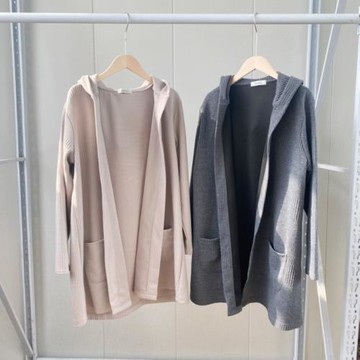 日單春季新款跨境休閑針織大口袋長款連帽休閑風衣