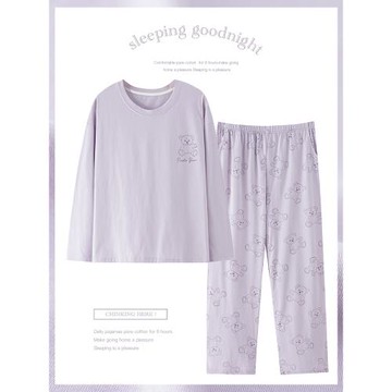 2025年新款睡衣女款春秋純棉套頭長袖長褲卡通可愛圓領家居服套裝