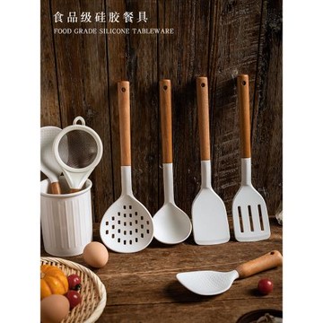 美式木柄鍋鏟硅膠廚具套裝炒菜全套家用漏勺耐高溫不粘鍋鏟子湯勺