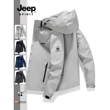 JEEP吉普外套男春秋季潮流可拆卸帽防風沖鋒衣秋冬款休閑夾克上衣