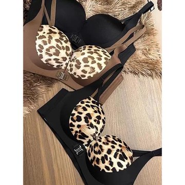 豹紋前扣美背內衣女小胸聚攏上托純欲性感收副乳文胸套裝一件代發