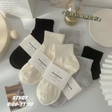 堅果媽咪 白色襪子女短筒襪春秋款ins潮黑色棉襪夏季運動純色男襪