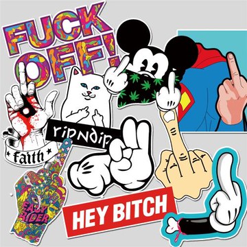 中指臟話筆記本電腦行李箱貼紙滑板單板說唱嘻哈吉他搖滾防水低俗
