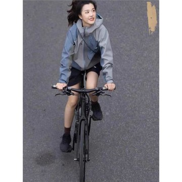 拼色沖鋒衣外套女款春秋2024年新款戶外運動防風防水寬松連帽上衣