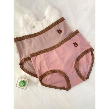 推薦出口日本刺繡蕾絲牛奶絲透氣彈力女士三角中高腰內褲有大碼