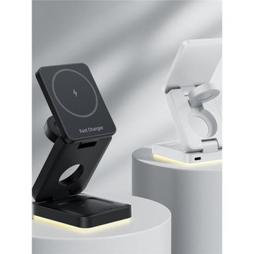 三合一無線充帶燈折疊磁吸無線充支架適用蘋果手機手表無線充電器