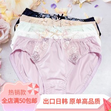 推薦出口日本刺繡蕾絲牛奶絲透氣彈力女士三角中高腰內褲有大碼